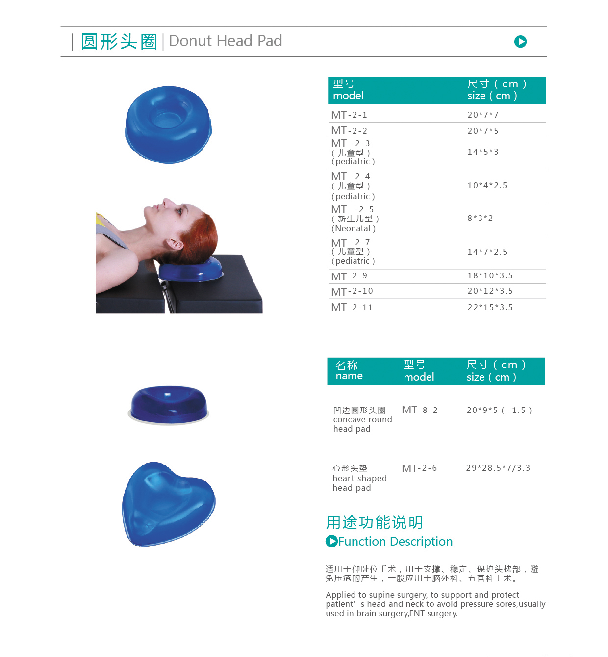 【產品用途】:適用於仰臥位手術,用於支撐、穩定、保護頭枕部,避免壓瘡的產生。